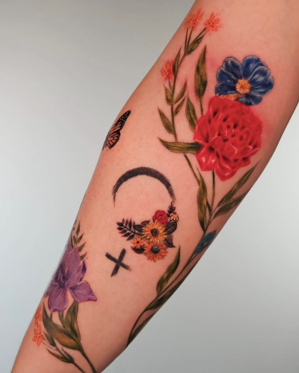 Iniciei minha jornada como tatuadora em 2020, onde encontrei na pele um suporte vivo para reunir tudo que amo: o gesto artístico, a conexão com pessoas e a criação de imagens que têm significado. Meu foco são tatuagens coloridas, com influência das artes visuais e da estética botânica, naturalista e simbólica.