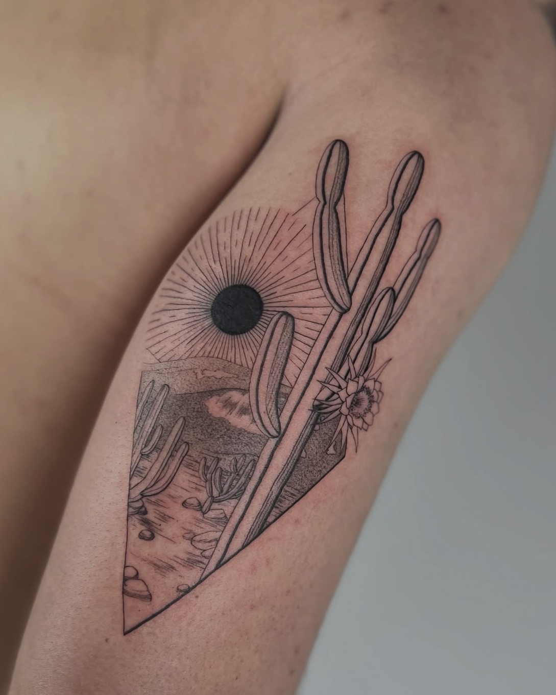 Sou tatuadora há 7 anos e atualmente curso Artes Visuais pela UFMG. Meu trabalho abrange uma ampla diversidade de técnicas que remetem a diferentes estilos, como o old school, o blackwork e o fineline. Em cada tatuagem, busco o que será mais condizente e potente para cada projeto.